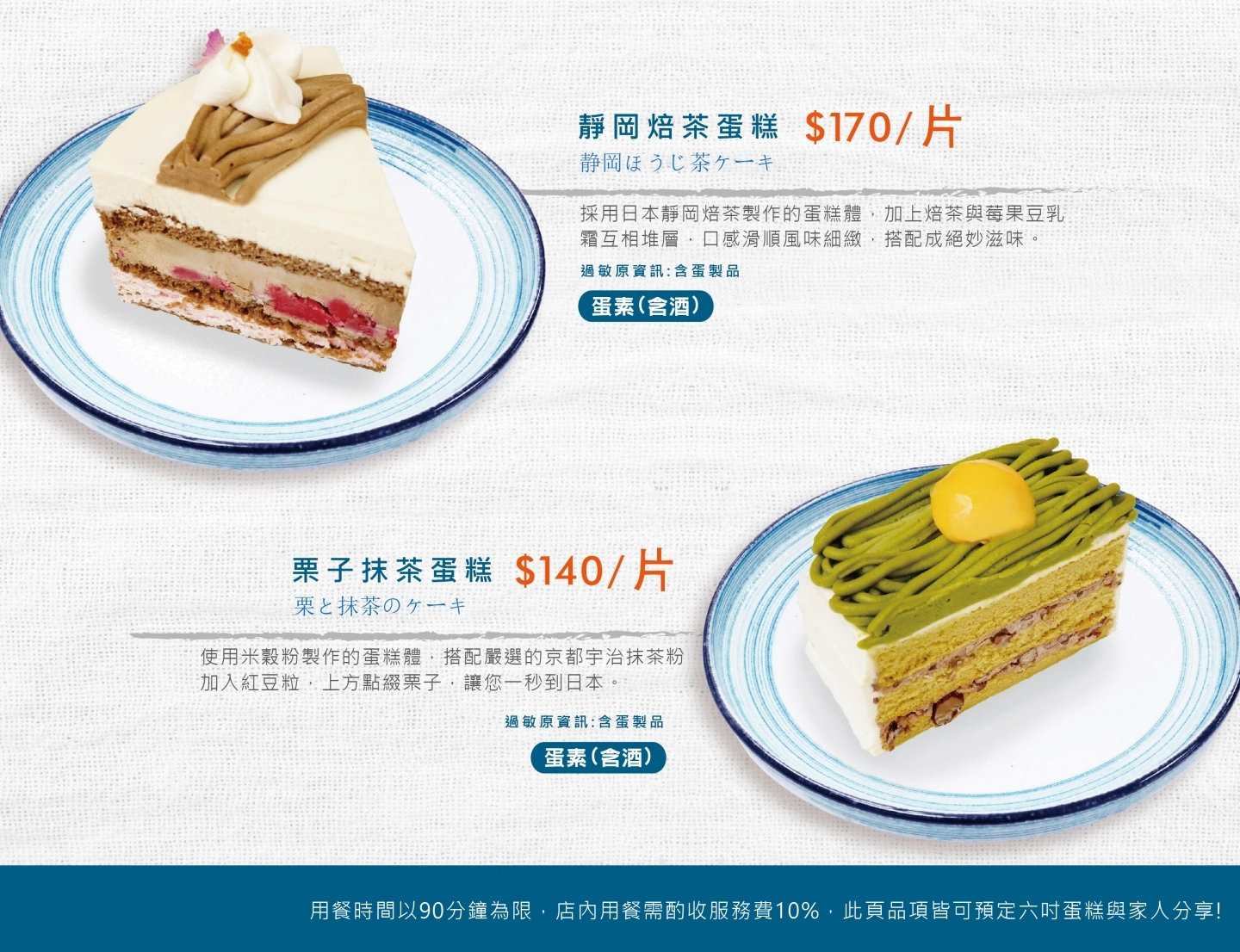 使用米穀粉製作的蛋糕體,搭配嚴選的京都宇治抹茶粉加入紅豆粒,上方點綴栗子,讓您一秒到日本。