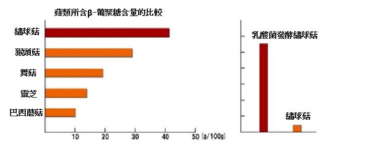 ★繡球菇經由乳酸發酵後,β-葡聚糖的萃取量增加了約20倍。